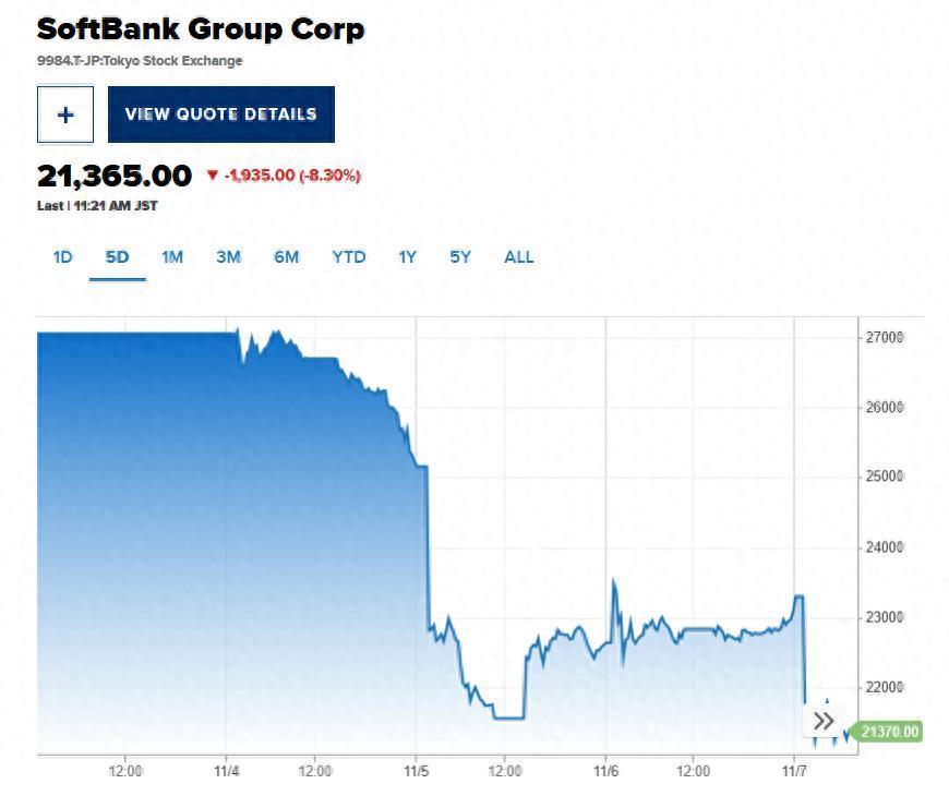 作为在AI基础设施、半导体及应用领域广泛布局的投资巨头,软银在东京股市的股价跌幅超过8%。此前,软银股价在周三暴跌10%,创下4月以来最差单日表现,周四小幅反弹近3%。若周五的跌幅维持不变,该集团本周市值将缩水约530亿美元。
